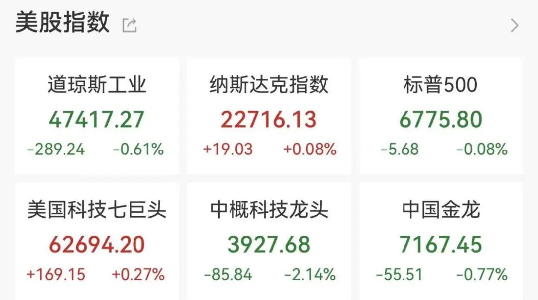 大型科技股多数上涨,甲骨文涨超9%,此前该公司公布的第三财季营收和利润均超出分析师预期,并上调了2027财年的收入预期。特斯拉、英特尔涨超2%,AMD、英伟达、谷歌小幅上涨,苹果、微软、博通小幅下跌。
