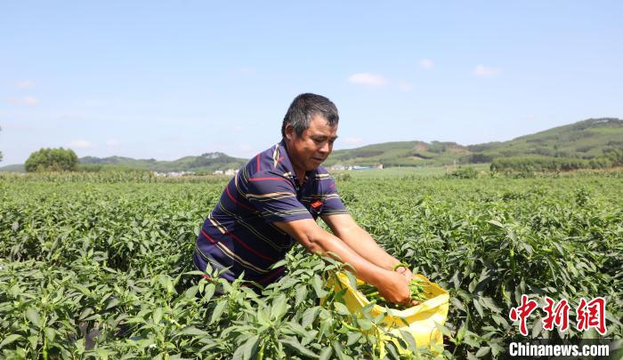 中新网柳州6月18日电 眼下正是辣椒成熟上市的季节,广西柳州市柳城县东泉镇前屯村新村屯的200亩辣椒进入采摘期。